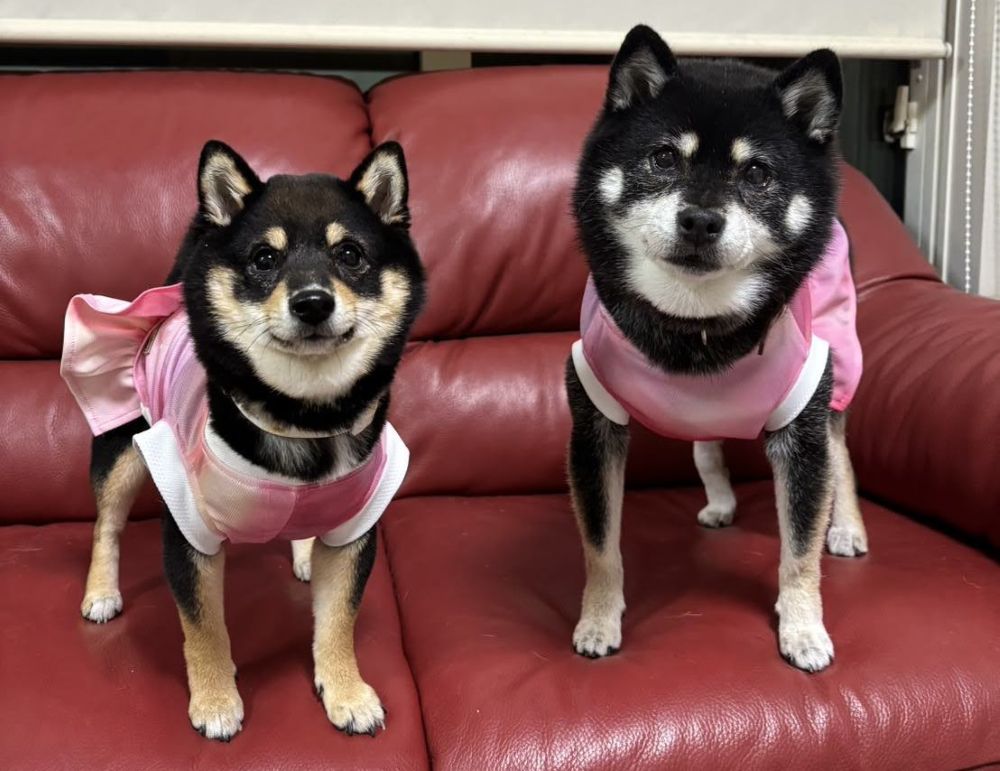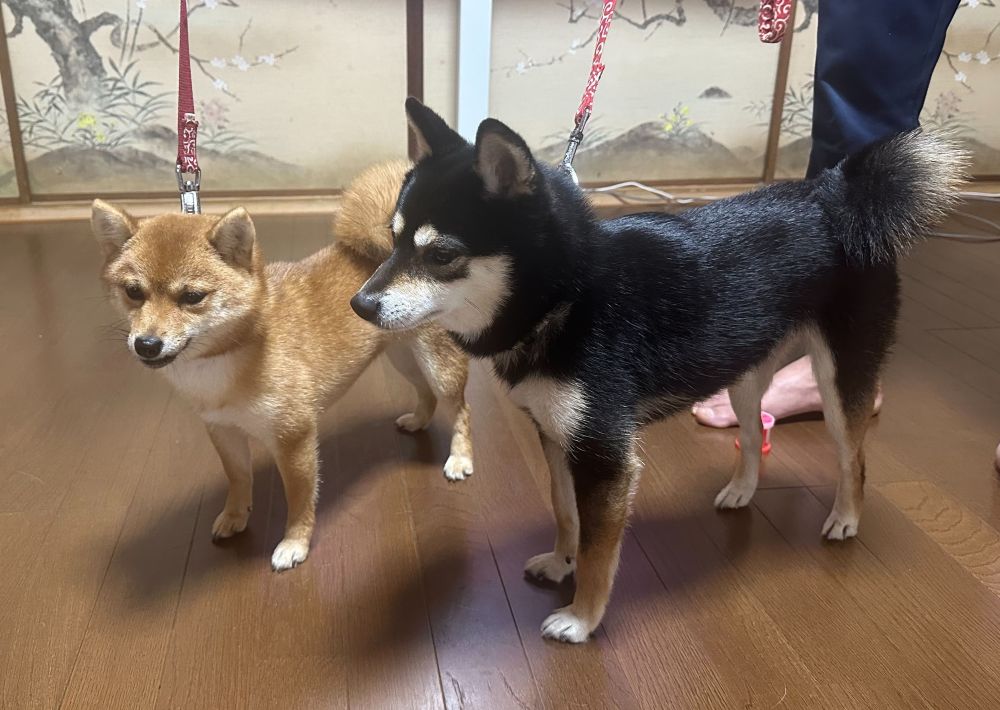 左が普通サイズの豆柴犬、右は小粒豆柴犬サイズ