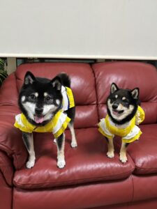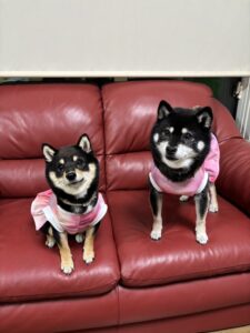 飼い主さんから、先住犬の黒豆柴と牧場生まれの黒の小粒豆柴の仲良し写真が届きました。🐶