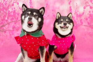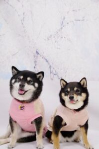春らしいかわいいピンクの衣装で先住犬と一緒に💗